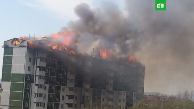 Горит здание Атриума в центре Москвы
