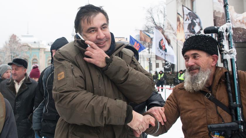 5 декабря в квартире экс-губернатора Одесской области Михаила Саакашвили прошел обыск, в результате которого лидер партии "Движение новых сил" был арестован правоохранительными органами. Полицейские задержали Саакашвили на крыше 8 этажного дома, в котором он проживал и откуда политик грозился спрыгнуть. Михаила Саакашвили посадили в полицейский микроавтобус и попытались увезти, однако, его сторонники соорудили баррикады, заблокировав машину в котором находился задержанный, пробили колеса, а также, забравшись на крышу микроавтобуса, развернули национальный флаг Украины. Бойцы Нацгвардии Украины, прибывшие на место столкновения, пытаются разобрать баррикады и оттеснить сторонников партии "Движение новых сил" от микроавтобуса, дав возможность правоохранительным органам увезти арестованного политика, передает РИА Новости.