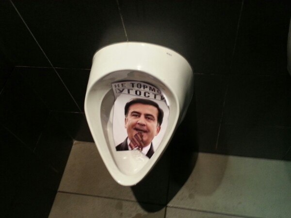 Активисты одесского "антимайдана", недовольные политикой губернатора Одесской области Михаила Саакашвили, провели сегодня необычную акцию. Фотография Саакашвили была расклеена в туалетах в центре Одессы. nsn.fm »