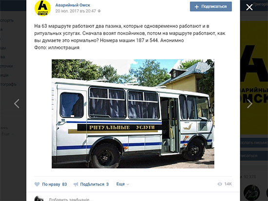 Салоны некоторых из них якобы повторяют конструкцию модели «Катафалк «ПАЗ Стандартный» с люком для удобства погрузки гроба и шторками на окнах social.mk.ru »