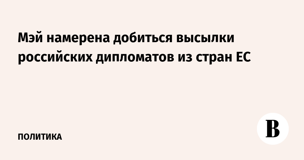 Премьер-министр Великобритании Тереза Мэй рассчитывает добиться высылки российских дипломатов из стран ЕС, сообщает Bloomberg со ссылкой на знакомые с вопросом источники. Для этого она рассылает ключевым союзникам своей страны данные британской разведки об отравлении экс-полковника ГРУ Сергея Скрипаля. Ранее сама Мэй объявила о высылке 23 российских дипломатов. vedomosti.ru »
