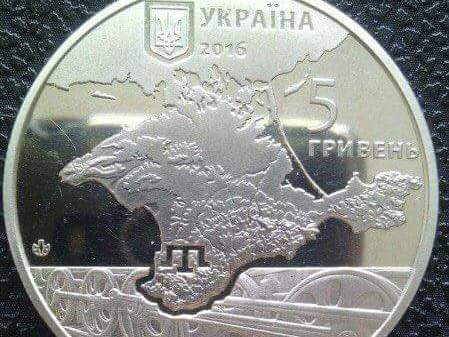 Монета номиналом 5 гривен (13,5 рубля), на аверсе которой изображен полуостров Крым над колесами железнодорожных вагонов, выпущена в Полтавской области Украины. Фото монеты на своей странице в Facebook опубликовал житель Кременчуга Евгений Перевезенцев. vz.ru »