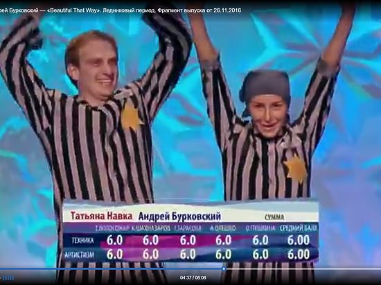 Выступление фигуристки Татьяны Навки и актера Андрея Бурковского, в основу которого лег фильм «Жизнь прекрасна», вызвало неоднозначную реакцию в СМИ и социальных сетях. Их появление на арене в костюмах узников концлагеря восприняли как насмешку над Холокостом. versia.ru »