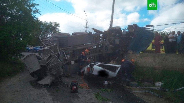 В Ставрополе бетономешалка перевернулась и упала на автомобиль "Нива", находившиеся в нем мужчина и женщина погибли. ntv.ru »
