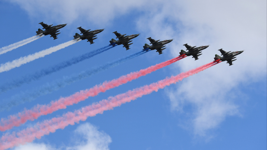 Военные летчики раскрасили небо над столицей в цвета российского триколора. 5-tv.ru »