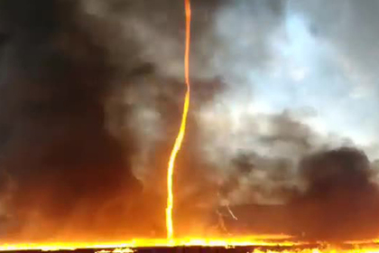 Пожарные, тушившие возгорание в британском графстве Дербишир, стали очевидцами необычного атмосферного явления — огненного торнадо. Вихрь появился возле горящей фабрики, где производили пластмассовые ящики для супермаркетов. lenta.ru »