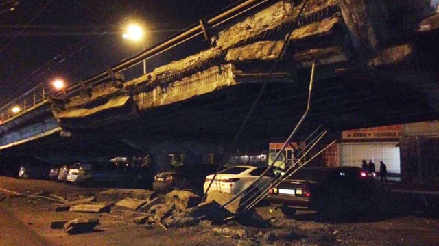 В центре украинской столице частично обрушился Шулявский путепровод. Мэр Киева Виталий Кличко объяснил это тем, что "мост устал от времени". ntv.ru »