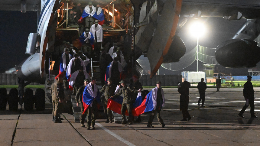 Опубликованы первые кадры с российскими военнослужащими и гражданскими, вернувшимися на Родину в результате обмена пленными с Украиной. life.ru »