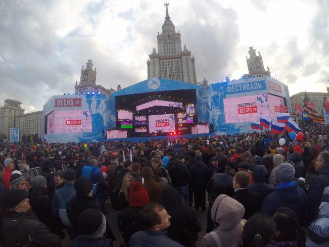 На Воробьевых горах в Москве начался праздничный концерт, приуроченный к трехлетней годовщине присоединений Крыма к России. Мероприятие проходит в рамках стартовавшего сегодня студенческого фестиваля «Весна». nsn.fm »